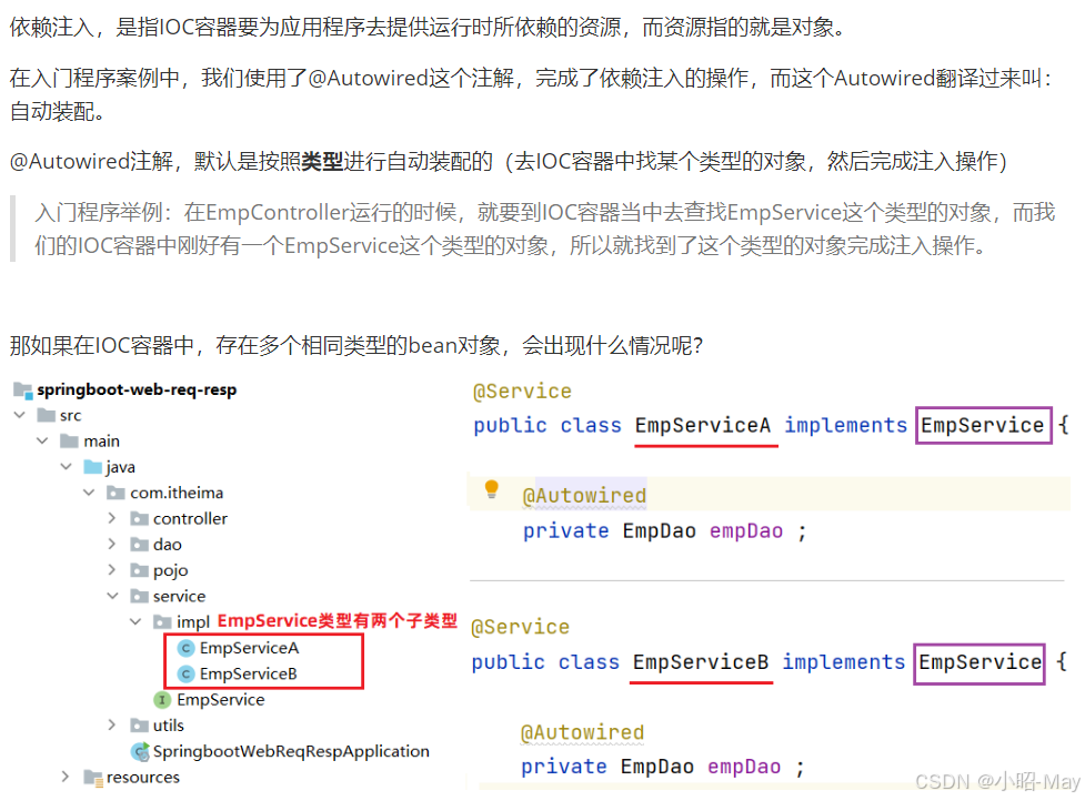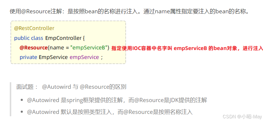 使用Spring提供的注解:@Autowired ,就可以实现程序运行时IOC容器自动注入需要的依赖对象