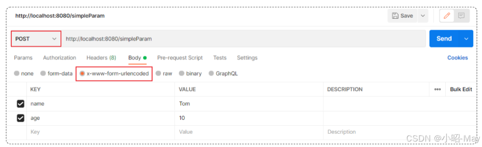// 第1个请求参数: name=Tom 参数名:name,参数值:Tom
