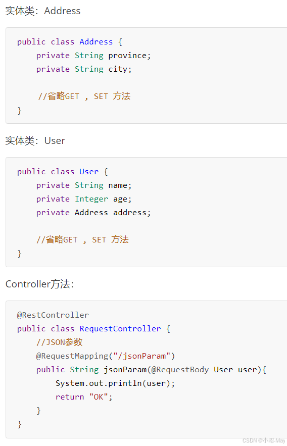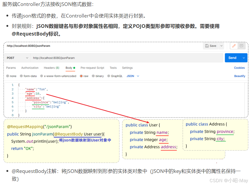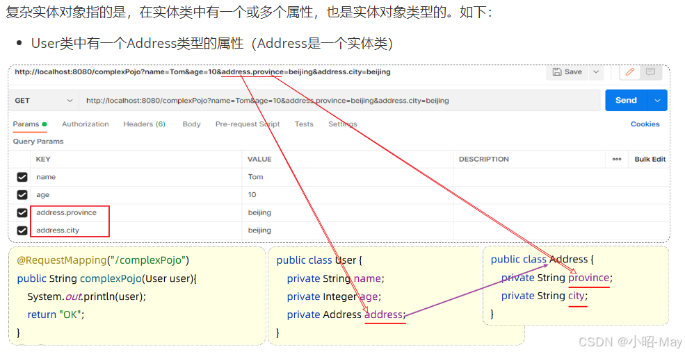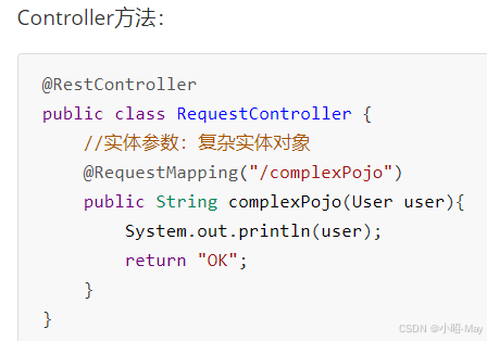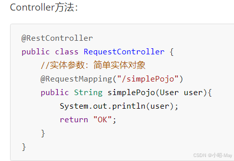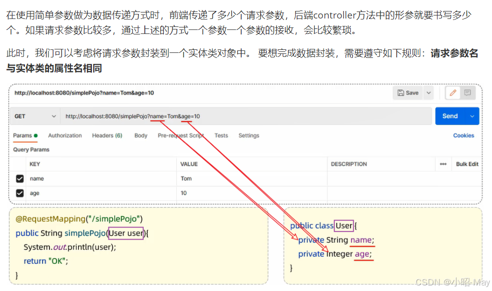 简单参数:参数名与形参变量名相同,定义形参即可接收参数。