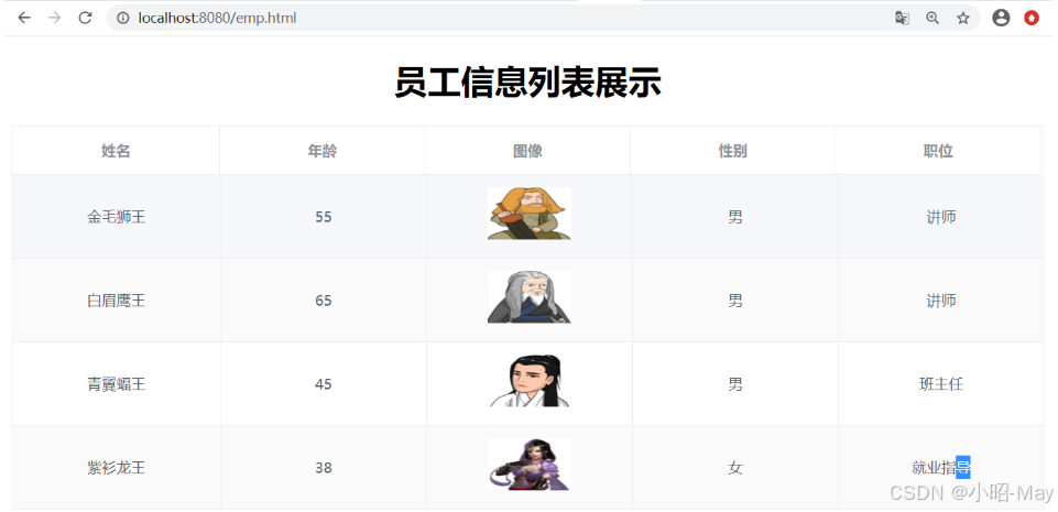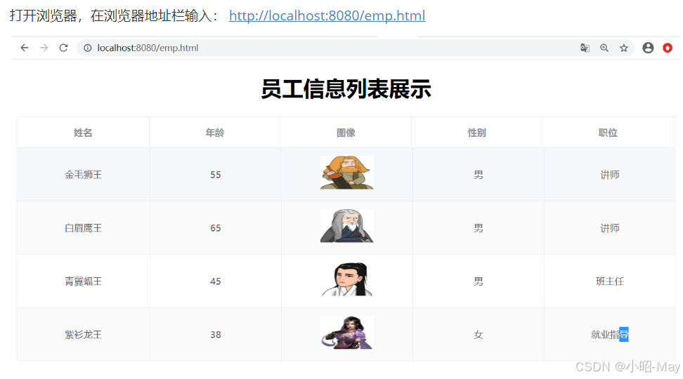 启动SpringBoot引导类,打开浏览器,输入:http://localhost:8080/emp.html