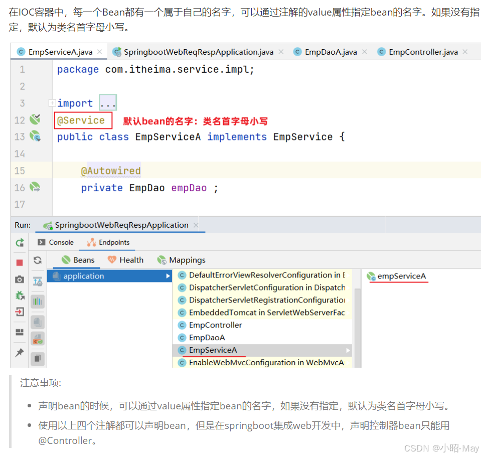 前面我们提到IOC控制反转,就是将对象的控制权交给Spring的IOC容器,由IOC容器创建及管理对象。IOC容器创建的对象称为bean对象。