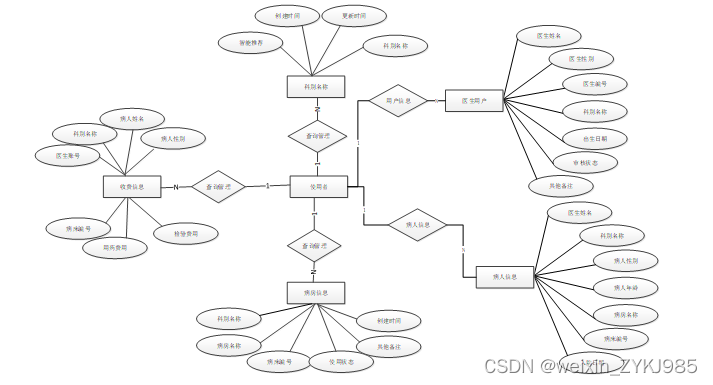 下面是整个医院住院管理系统中主要的数据库表总E-R实体关系图。