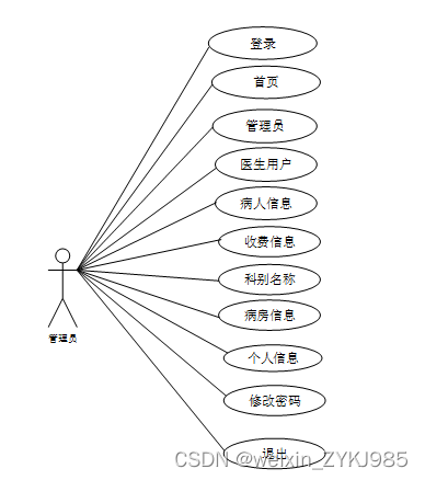 web后台管理上的管理员是维护整个医院住院管理系统中所有数据信息的。管理员角色用例如图2-4所示。