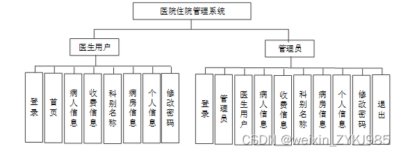 (1)医院住院管理系统是中需要存储不少病人信息,其模块功能结构,具体的结构图如下: