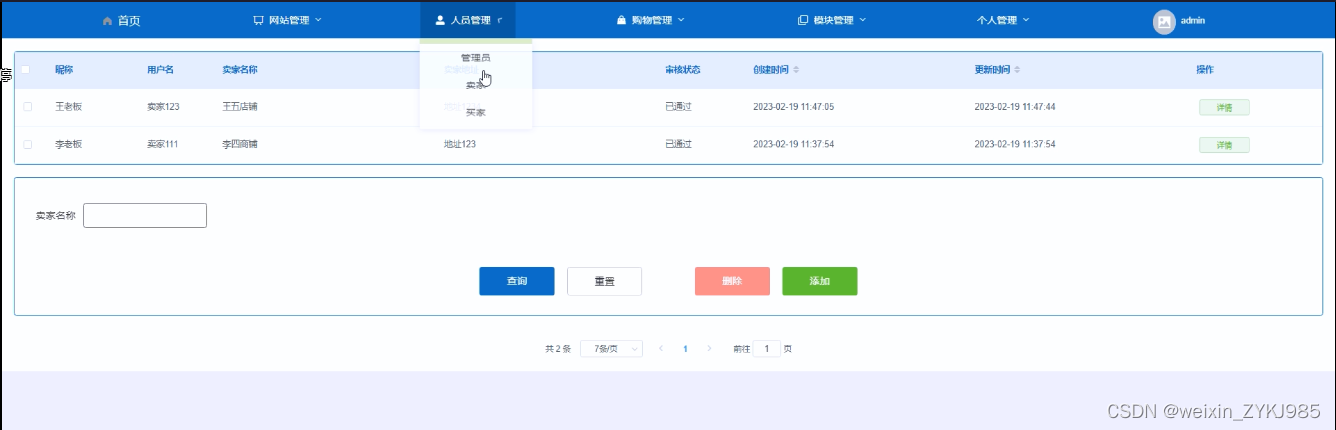 (2)人员管理:管理员可以对Springboot二手交易平台APP中所有的用户进行管控,包括了管理员和卖家、买家。