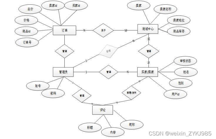 下面是整个Springboot二手交易平台APP中主要的数据库表总E-R实体关系图。
