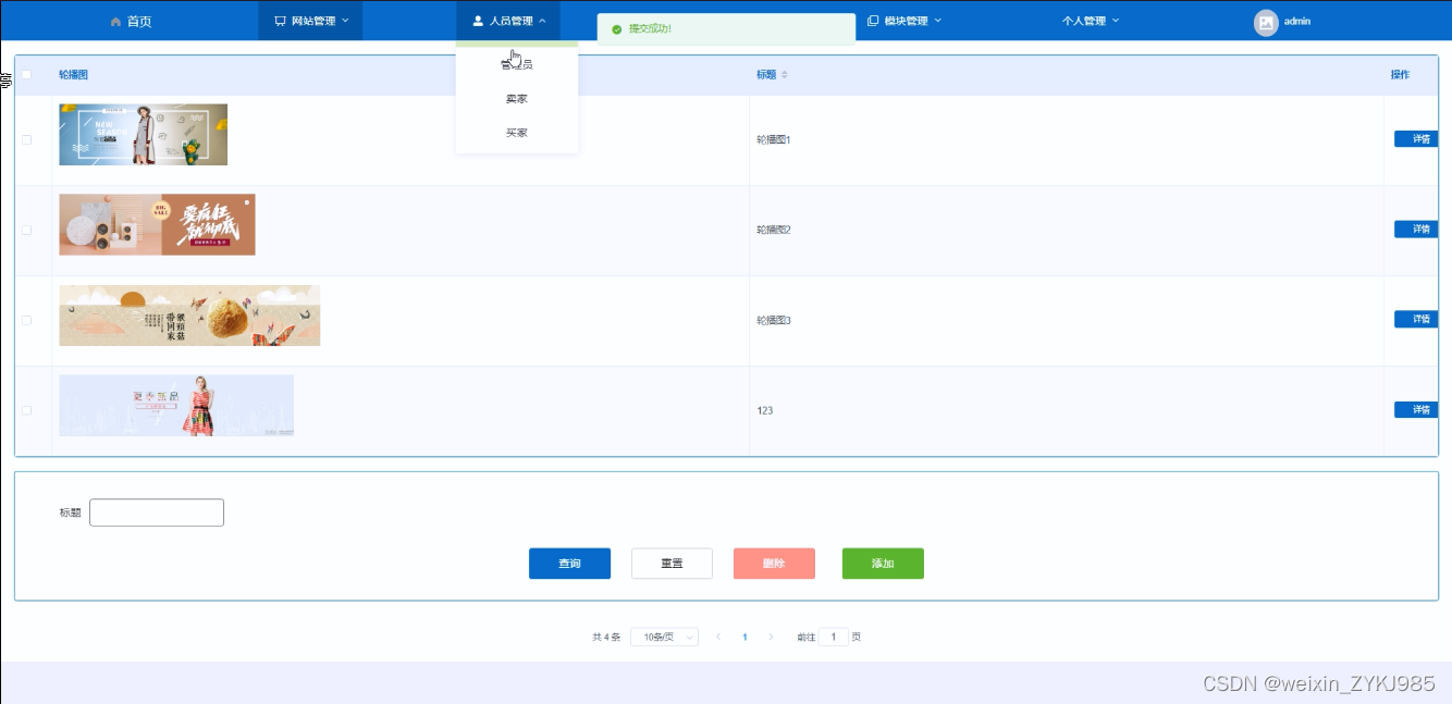 网站管理模块是对系统公告和轮播图的设置,只有管理员权限才能进行更新维护。界面如下图4-11所示。