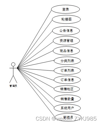 web后台管理上的管理员是维护整个蜂产品销售情况分析系统中所有数据信息的。管理员角色用例如图2-4所示。