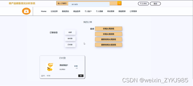 (6)订单:用户在提交订单后,可以对提交的订单进行管理。