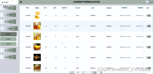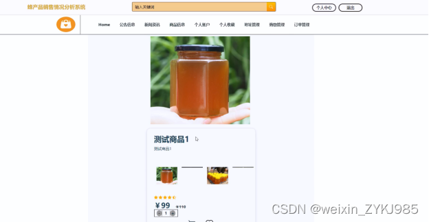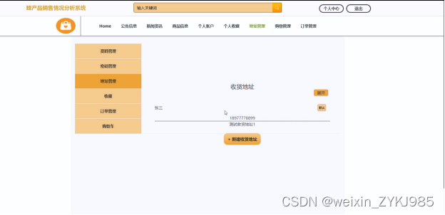 (6)商城管理:综合管理所属蜂产品销售情况分析系统中的所有的商品信息、分类以及用户提交的订单信息。