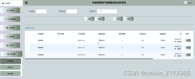 The sales analysis system for this bee product uses MySQL as the database and is developed using Python technology. During the design process, the system code was fully guaranteed to have good readability, practicality, scalability, universality, ease of later maintenance, easy operation, and concise pages.