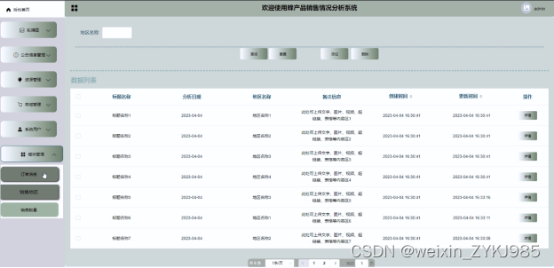 (7)模块管理:在“模块管理”这一菜单下,我们会看到订单信息、销售地区、销售数量,管理员可以对其进行增删改查操作。