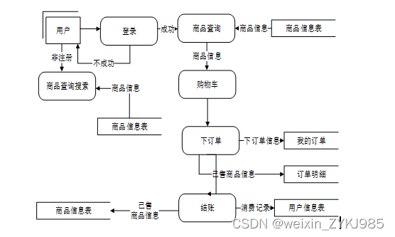 蜂产品销售情况分析系统主要的目的就是实现对商品的在线选购,图2-1就是系统的数据流图。