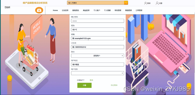 (1)用户注册登录:用户注册为系统用户并登录蜂产品销售情况分析系统;用户对个人信息的增删改查,比如个人资料,密码修改。