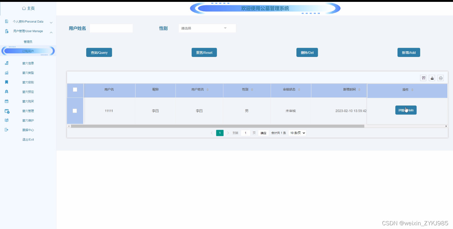 | 1 | 点击用户注册查看详情按钮 | 无 | 跳转到用户注册详情 | |