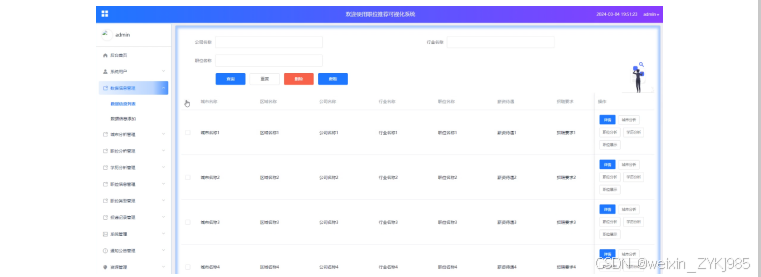 (5)职位分析管理:管理员点击“职位分析管理”系统会把职位推荐可视化系统当中所有的职位分析信息都显示出来,可以对职位分析信息进行查询、重置或删除。