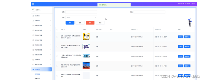 (12)资源管理:管理员在“资源管理”页面可对新闻资讯以及资讯分类进行增删改查等操作。
