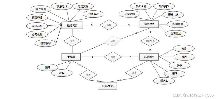 下面是整个职位推荐可视化系统中主要的数据库表总E-R实体关系图。