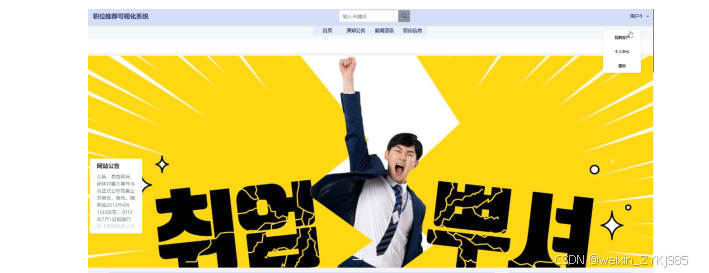 (6)个人中心:用户点击右上角的“用户名”,然后点击“个人中心”便可对投递记录和个人收藏信息进行管理。