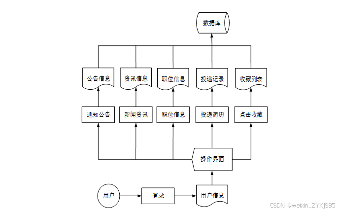 开发基于协同过滤算法的职位推荐可视化系统的设计与实现系统最主要的一个目的就是实现用户在线浏览职位信息的便捷,系统的业务流程图如下所示。