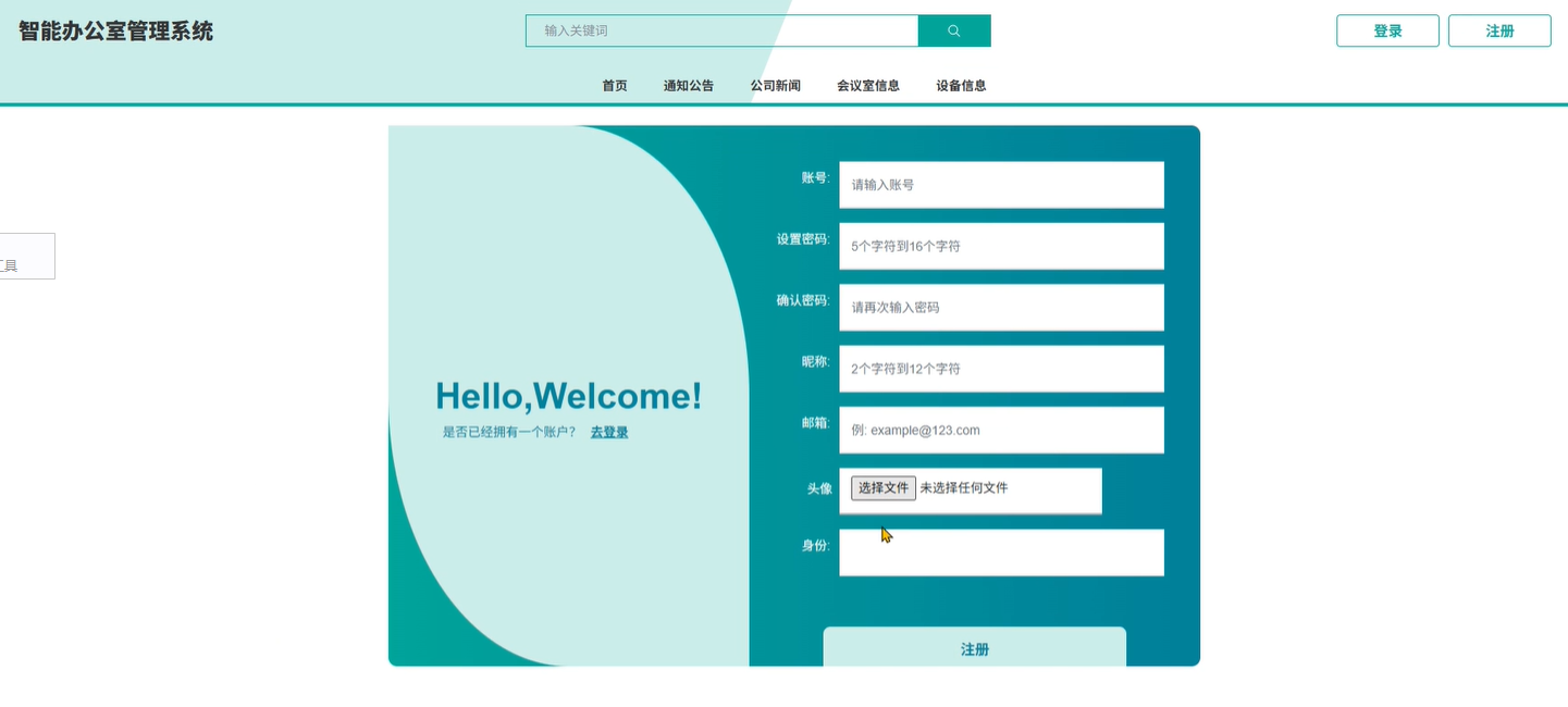 (1)首页:展示的是轮播图、公司新闻、会议室信息、设备信息等推荐。