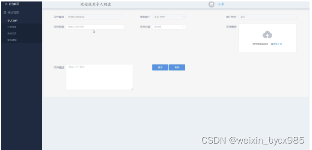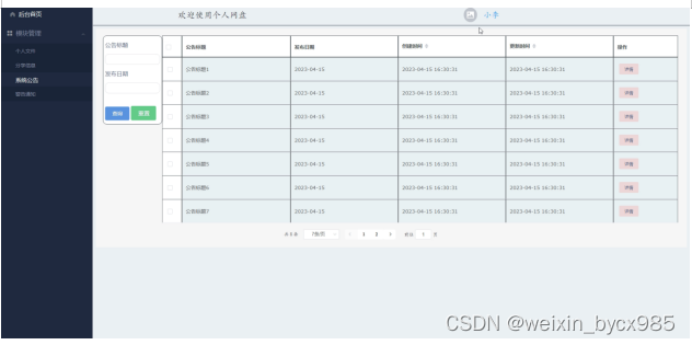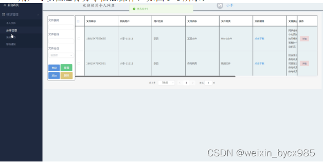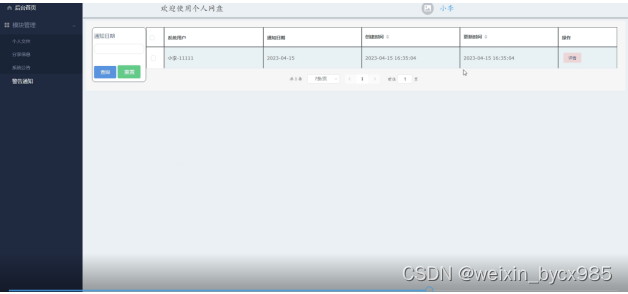 (1)功能要求:首页,文件信息、分享信息、系统公告、警告通知,修改密码,退出登录等功能模块。