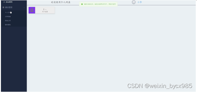 通过对功能的测试,个人网盘系统的基本功能都是可行的,不管是系统里面的功能,还是界面的设计都是可值得推广宣传的。