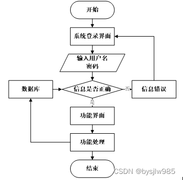 用户打开客户端并进入系统后,会先显示登录界面,输入正确的用户名和密码,系统自动检测信息,若信息无误,则用户会进入系统功能界面,进行操作,否则会提示错误无法登录,操作流程如图3-3所示。