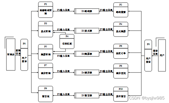 对系统的数据流进行分析,系统的使用者分为二类,一般用户,管理员。系统主要对界面信息传送,登录信息的验证,注册信息的接收,用户各种操作的响应做处理。