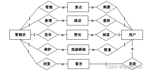从前面可以分析到数据库中最重要的是景点信息,用户信息,管理员信息,同时存在酒店信息和景区信息。分析可以得到如下数据描述: