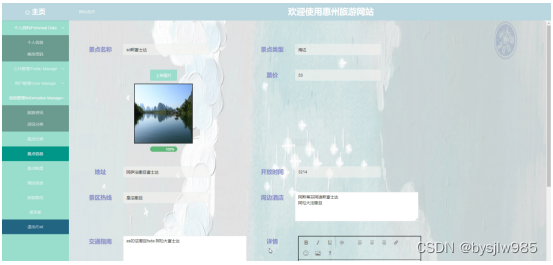 景点信息管理:对景点信息进行维护,添加、删除、修改信息。