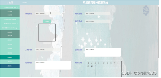 旅游路线管理:发布各类旅游路线。