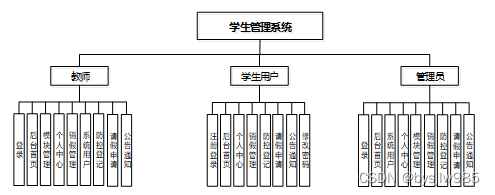 学生管理系统 在对需求做解析后,整个系统主要分为三个部分:管理员、教师、学生用户,每个模块下的分支功能不一样。对功能做出如下说明: