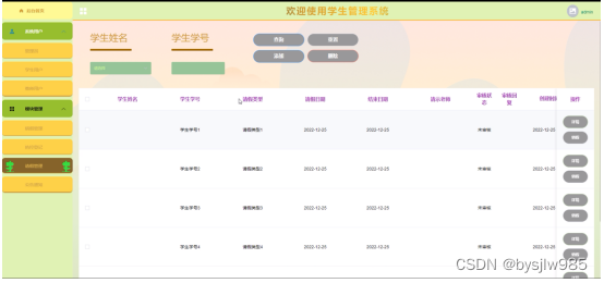| 学生登录,点击进入请假申请相关信息管理的页面 | 提示非超级用户,权限不够,无法进行相关页面删除 | 一致 | |