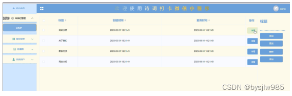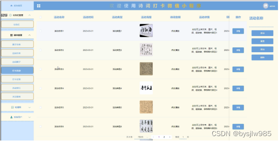 With the rapid development of China's economy, people's demand for mobile phones is increasing, and various mobile software is also widely used. However, for data information management of mobile phones, various software for mobile phones is also highly favored by users. The Poetry Check in WeChat mini program is widely used by users. In order to facilitate users to view the data information management of poetry check in online at any time, a Poetry Check in WeChat mini program has been developed.