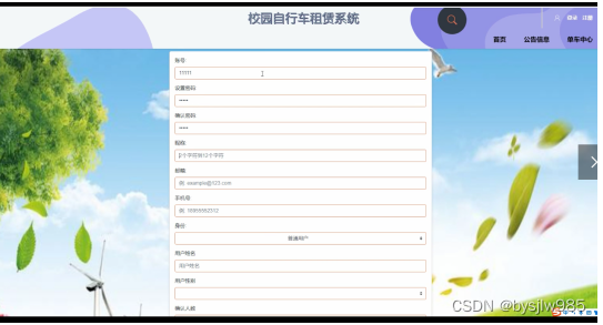 会员用户登录校园自行车租赁系统,需先注册,在注册页面输入用户名、密码等信息完成注册后进行登录,如下图所示。