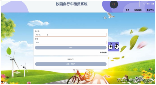 普通用户登录校园自行车租赁系统,需先注册,在登录页面输入用户名、密码进行登录,如下图所示。