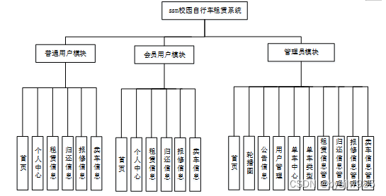 (1)功能要求:首页、个人资料、公共管理(轮播图、公告信息)用户管理(管理员、普通用户、会员用户)单车中心、单车类型、租赁信息(会员)、归还信息(会员)、报修信息(会员)、租赁信息、归还信息、报修信息、卖车信息、卖车信息(会员)等功能模块。