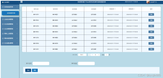 (3)应急预案管理:企业用户点击“应急预案管理”可以查看所有的应急预案信息列表,支持通过事件名称或事件类型查询相关应急预案信息。