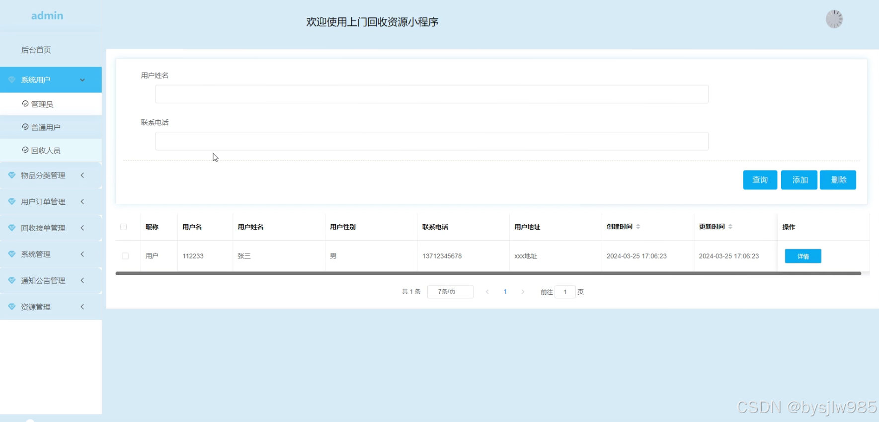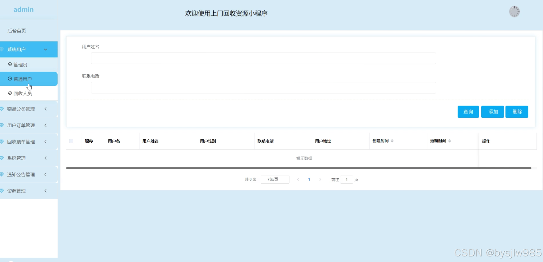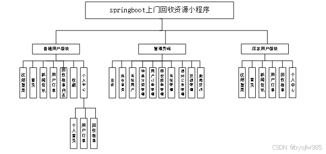 本上门回收资源小程序主要包括三大功能模块,即普通用户模块、管理员功能模块和回收人员模块。