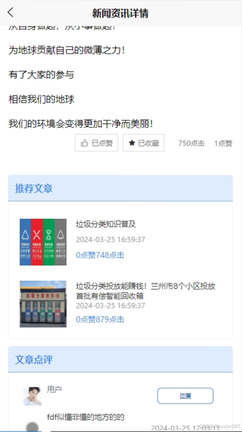 当用户点击首页导航栏的“新闻资讯”后将会进入新闻资讯详情,用户可以点进感兴趣的新闻查看详情,发布评论,新闻资讯界面如下图5-4所示。