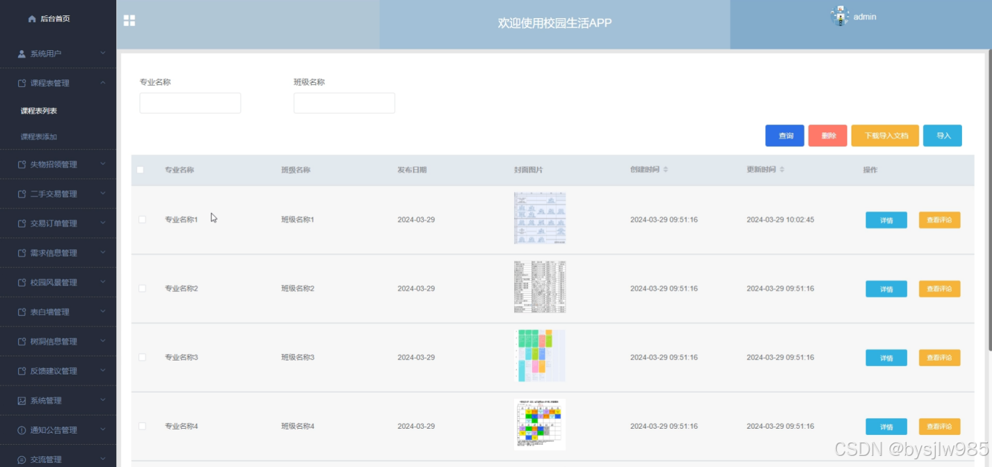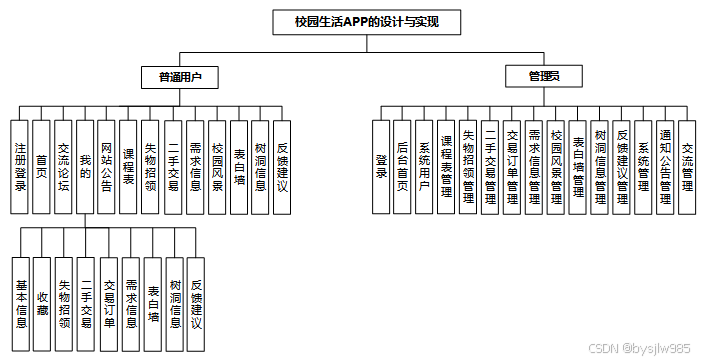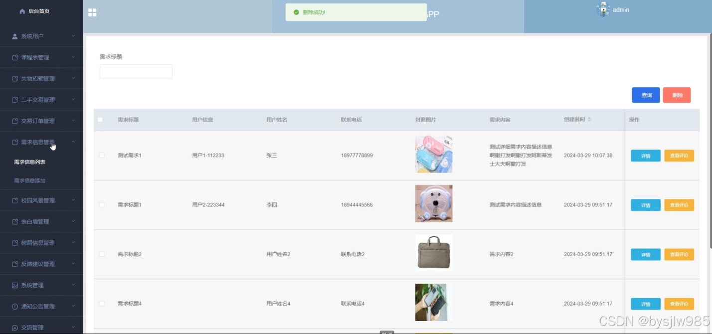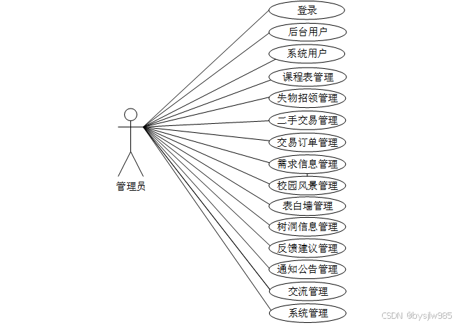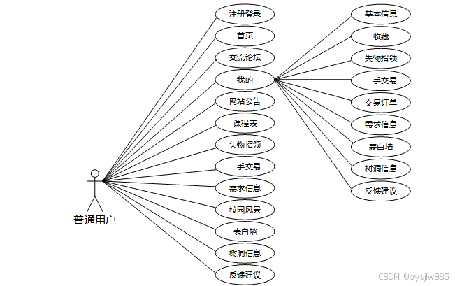 本文详细阐述了系统的需求分析与设计。在需求分析中,考虑到学生的多样化需求,我们确定了主要功能模块,包括课程表管理、失物招领管理、二手交易管理、交易订单管理、需求信息管理、校园风景管理、表白墙管理、树洞信息管理、反馈建议管理、系统管理、通知公告管理、交流管理等。方便学生在适应新环境的过程中获得及时指导和帮助。