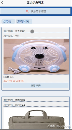 (8)需求信息:当用户点击“需求信息”时,可查看所有发布的需求信息,也可以发布需求信息并对其点赞、收藏和评论。
