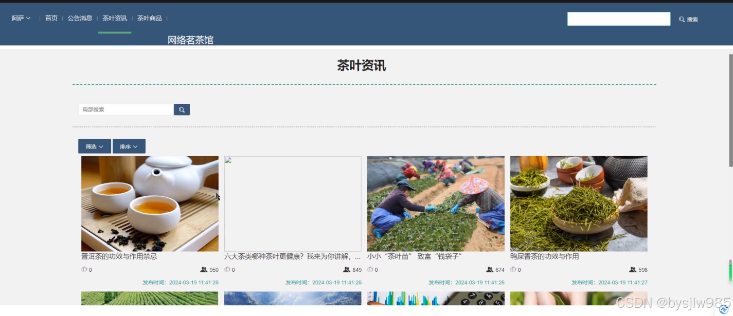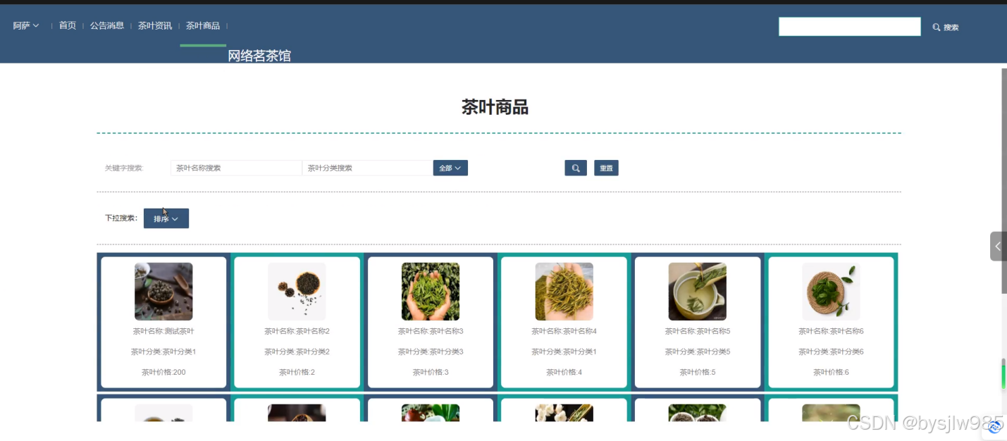 关键词:茶叶;网络茗茶馆;SSM+HTML