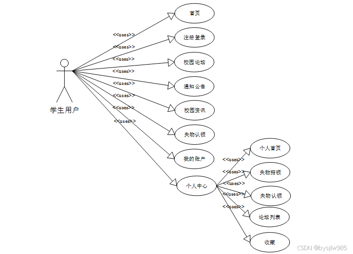 图2-2 校园失物招领系统学生用户角色用例图