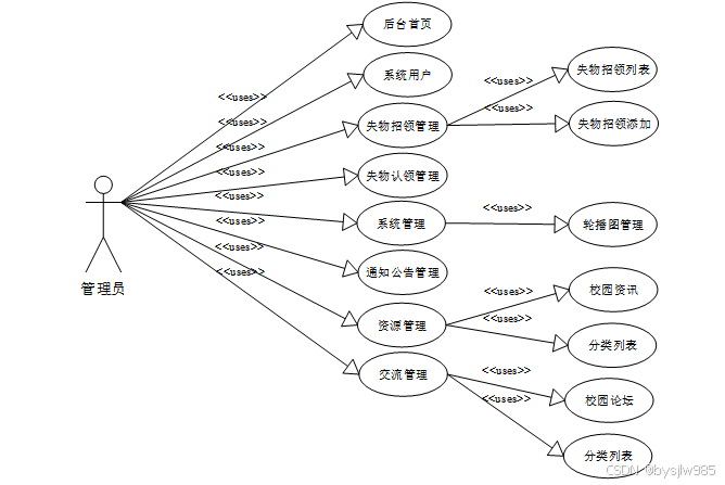 图2-3 校园失物招领系统管理员角色用例图