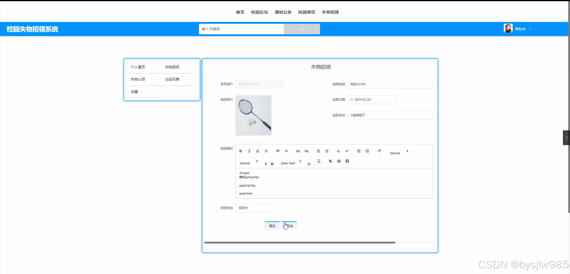 失物招领添加: 添加新的失物失物招领。