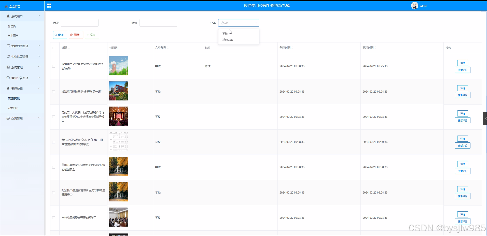 校园资讯: 管理校园资讯的发布和分类。