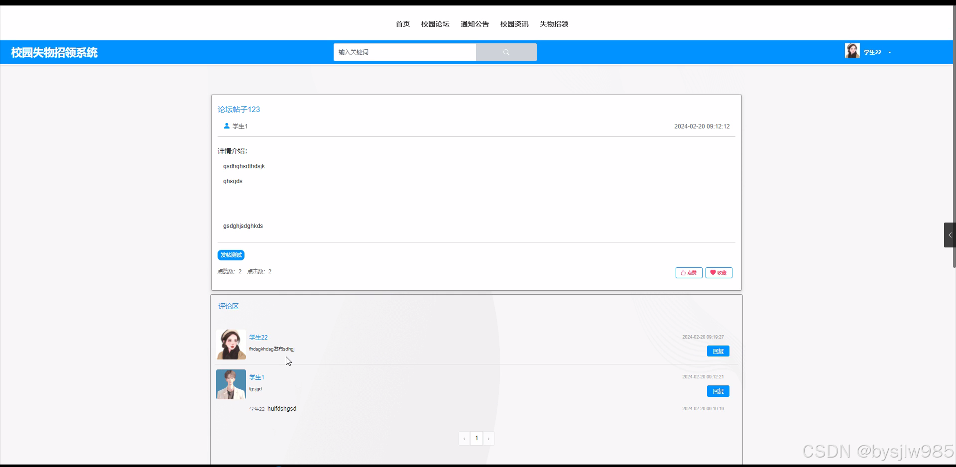 校园论坛:学生可以查看和发表校园相关话题的帖子,进行校园和讨论。