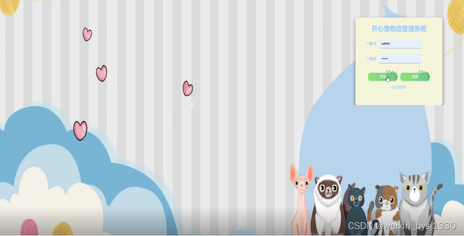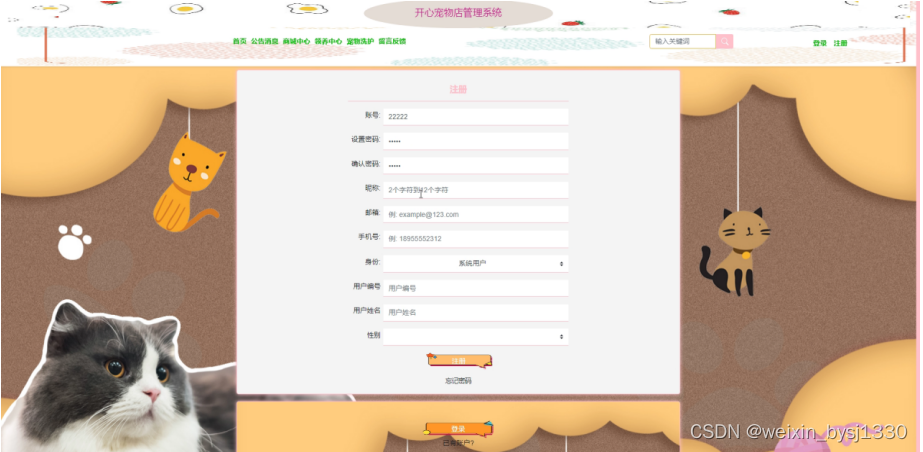 3.注册登录,开心宠物店管理系统需要吸引用户 ,即通过注册来提高用户的存留率。